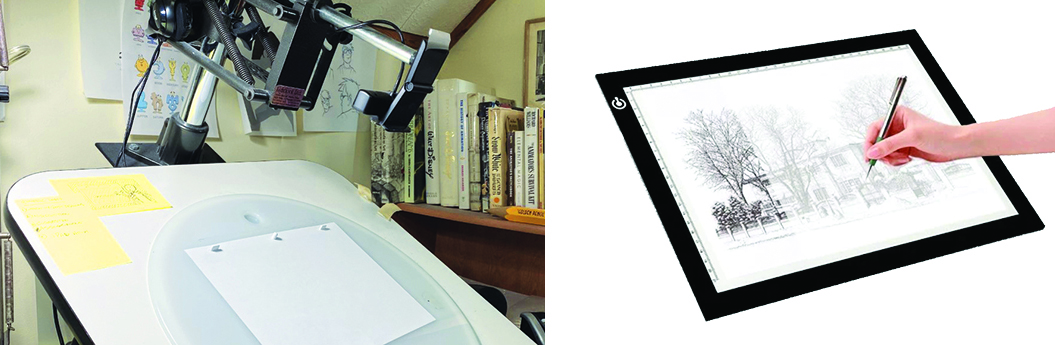 Professional lightbox set-up (left) and a simple LED tracing box (right).