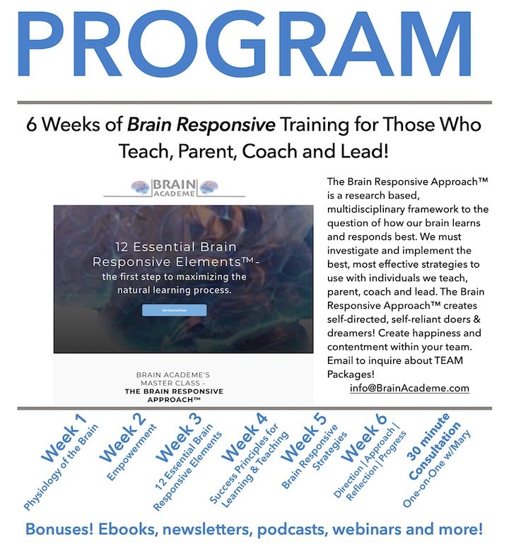 The Brain Responsive Approach™ is a 6-week comprehensive, immersion program on the knowledge, skills, and strategies essential to the brain and how it learns.
